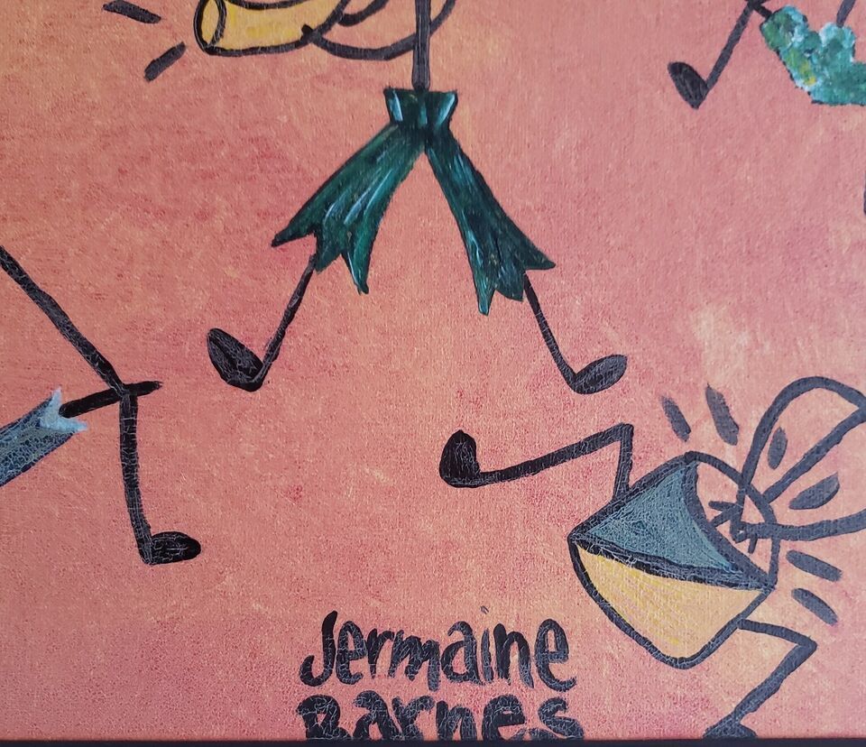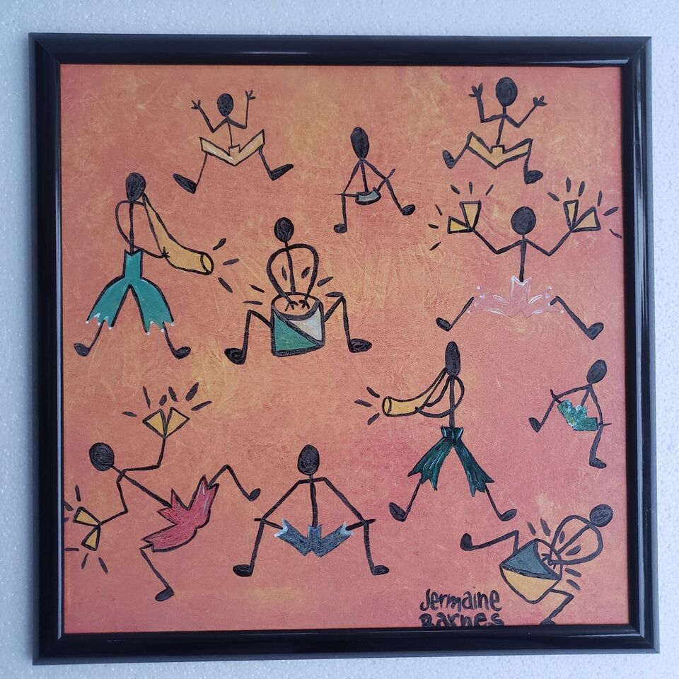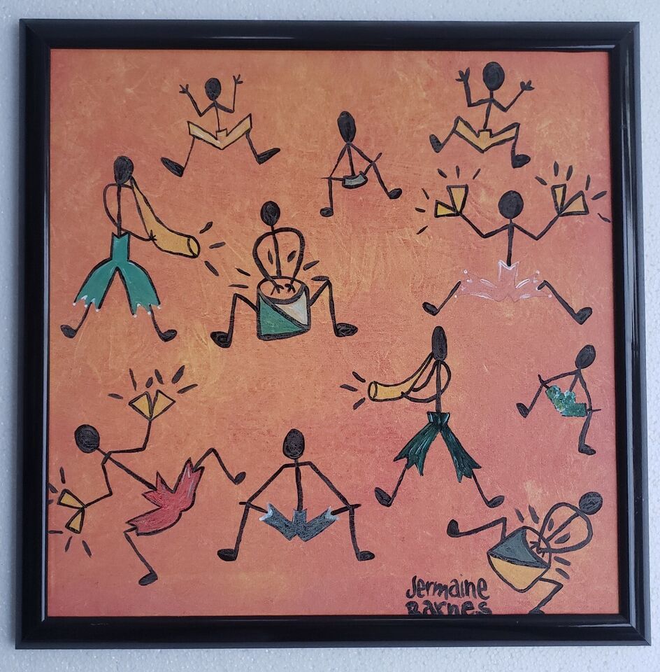 Jermaine Barnes Naif Folk Tribal MUSICIANS Afro American Caribbean Art Painting