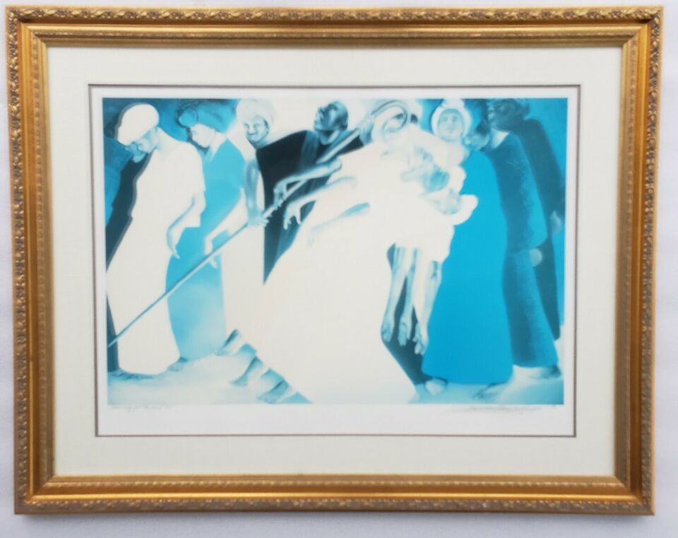 Framed and matted with sealed backing. Frame measures 38 by 30 inches. Artwork is in great condition as displayed in the photo gallery. Shipped with FedEx Ground