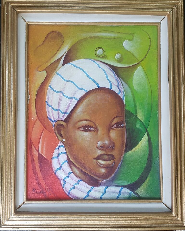 Signed M. RINVIL - Portrait of a Woman - Haitian Contemporary Art Painting Haiti