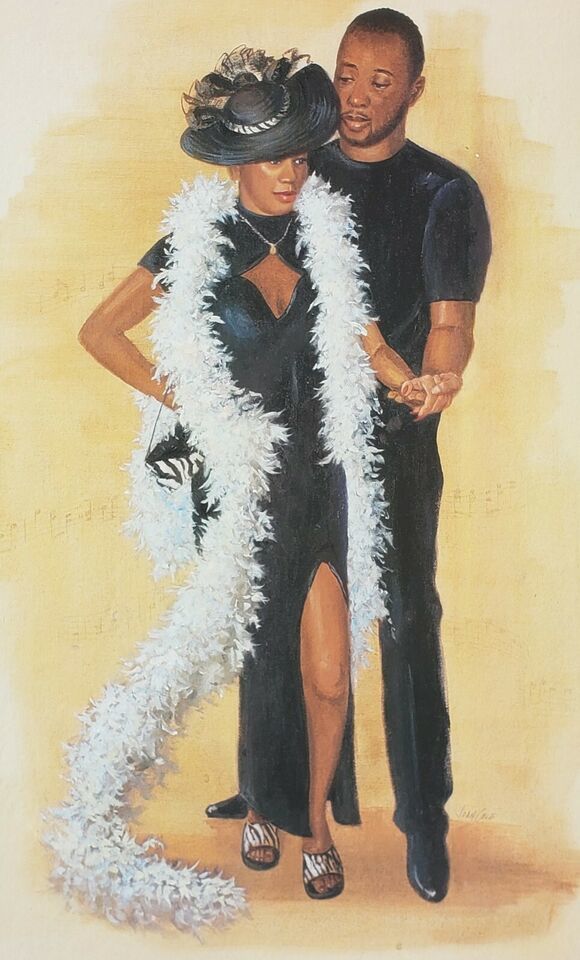 WOW! Joan Cole - Young Lovers Embraced -' Black Memorabilia Art Home Interiors