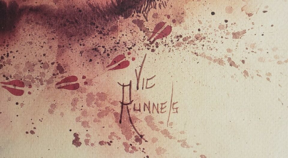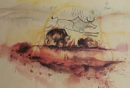 Framed Vic Runnels Buffalo Shield Native American Indian Watercolor Art Print. Shipped with USPS Priority Mail. Artwork is in excellent condition as displayed in the photo gallery.