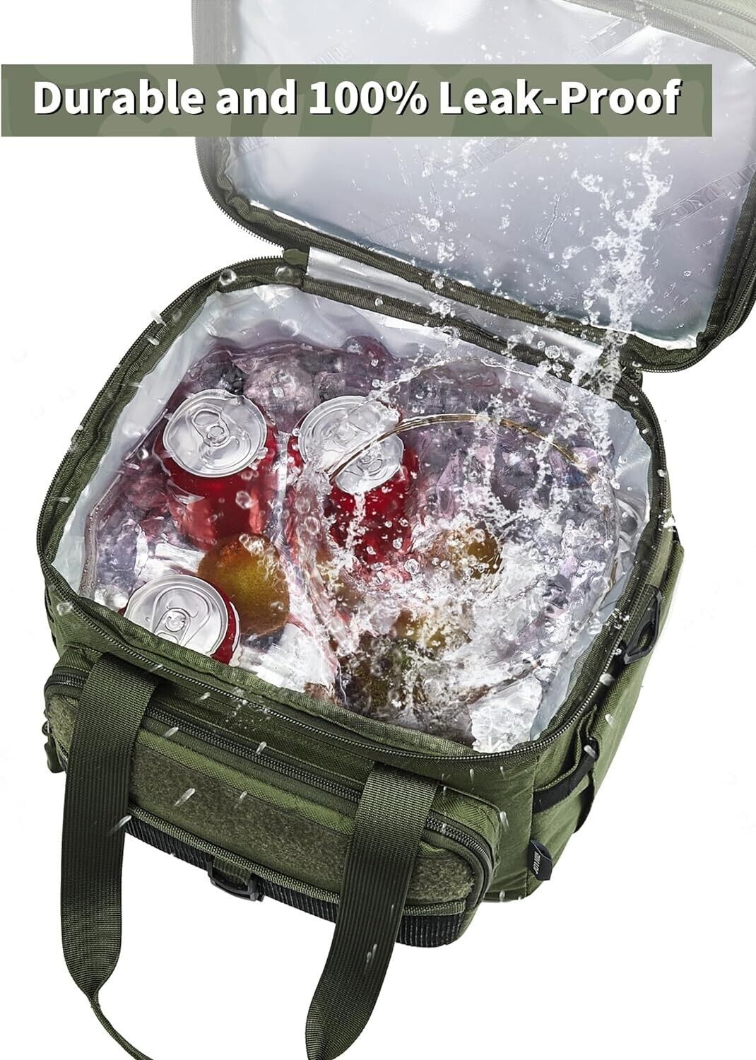 ?Durable and 100% Leak-Proof?This lunch bag for men has been upgraded with fabrics and accessories. The outer wear / water resistant Oxford fabric is very durable. Customized YKK zipper is smooth to open and close. Both shoulder strap and handle are double stitched with a load-bearing of 55BL. Customized aluminum foil lining and the heat-pressed seamless craft ensure 100% leakproof.