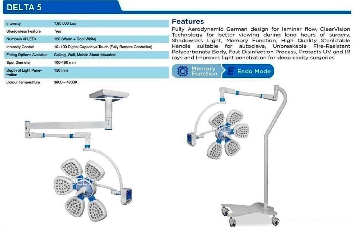 Model : Delta: 5 : Ceiling / Mobile / Wall Mount OT Light. Please mention the note as per requirement