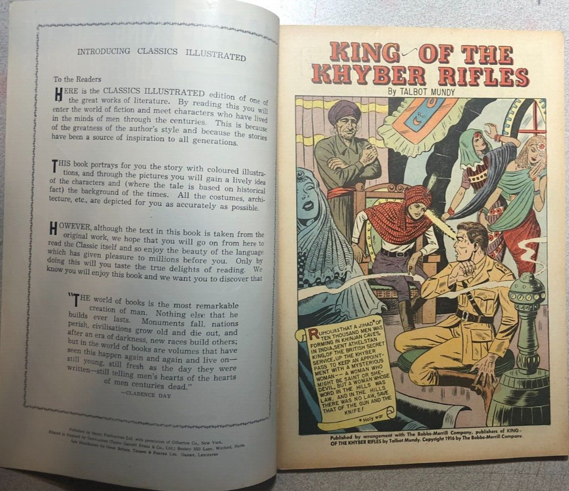 CLASSICS ILLUSTRATED #107 King of Khyber Rifles (HRN 112) UK comics edition VG++