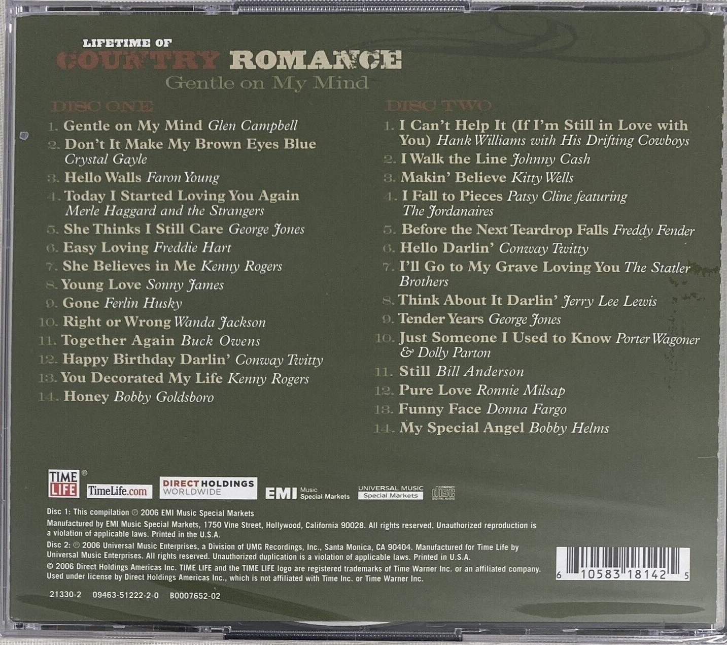 You've got a great ear for timeless country! Here's the full track list for the Time Life Classic Country Romance: Gentle On My Mind 2-CD set, released in 2006 as part of the Lifetime of Country Romance series. This collection blends heartfelt ballads with iconic voices from across generations ?: