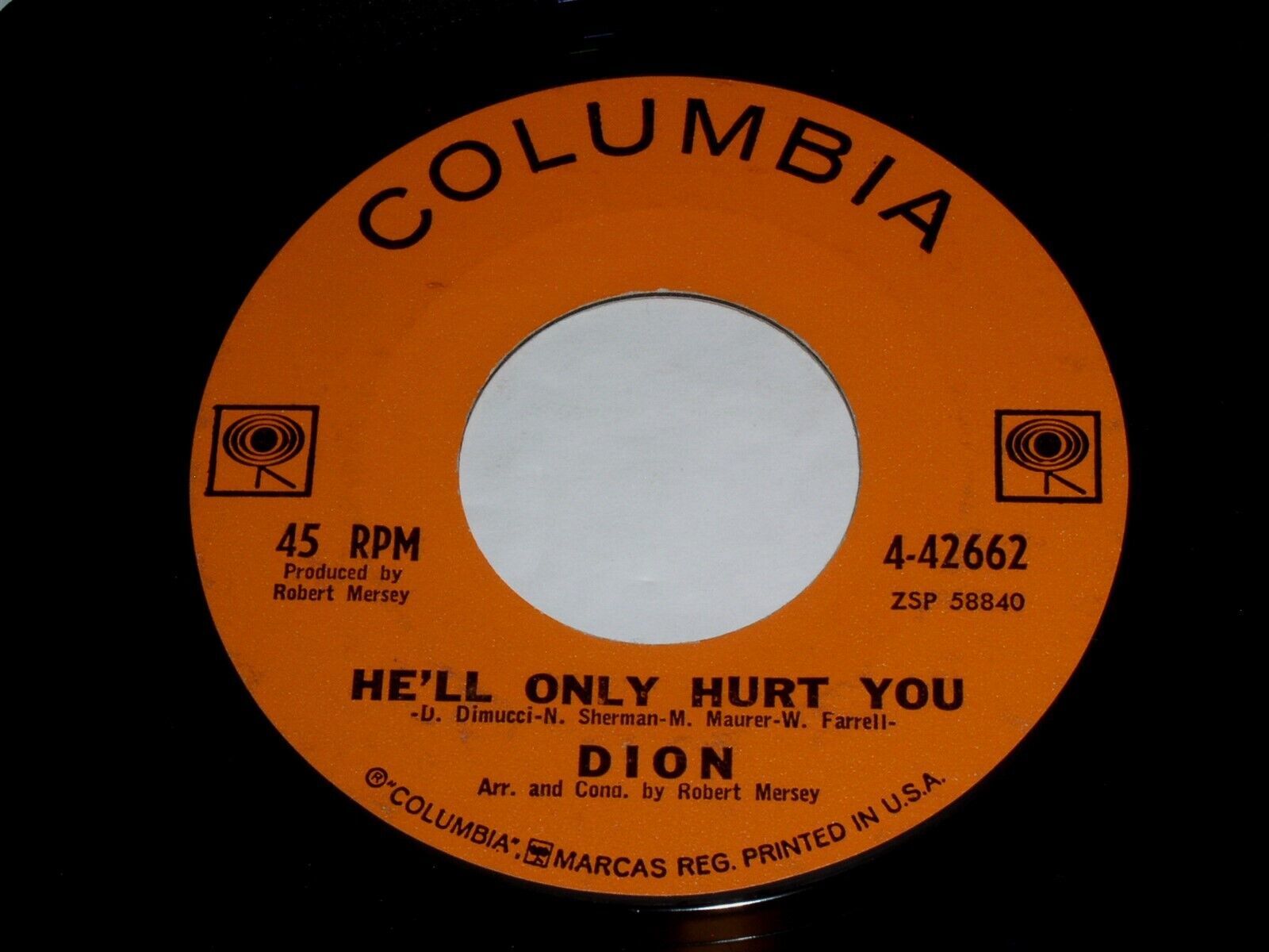 Dion Ruby Baby He'll Only Hurt You 45 Rpm Record Vinyl Columbia Label 4-42662