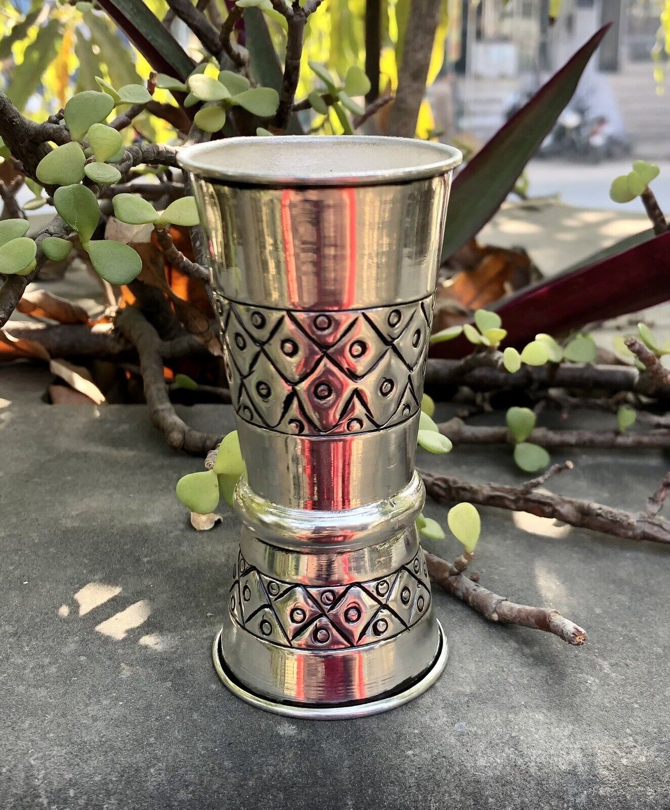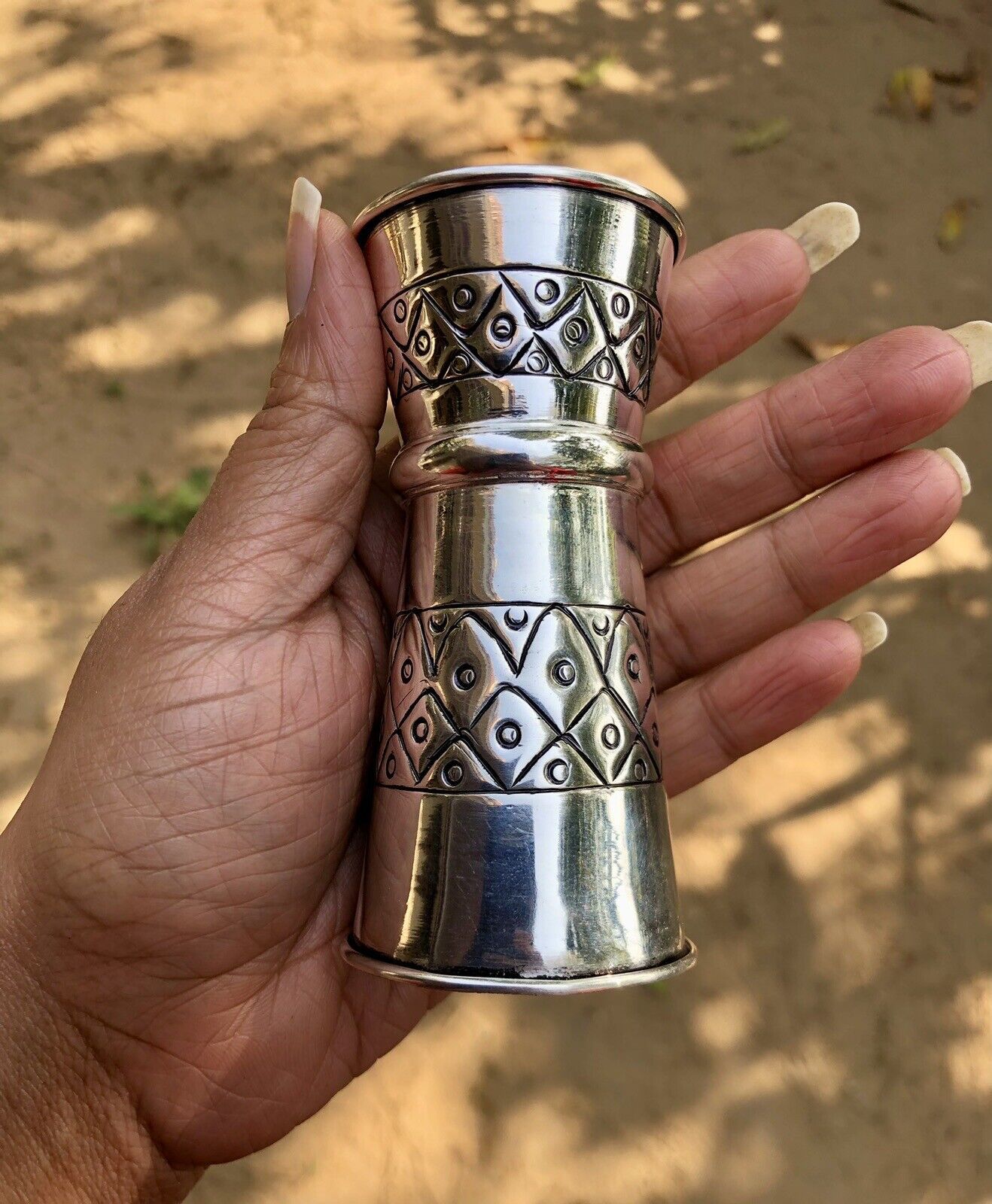 Absolutamente hecho a mano por artesanos indios, alto pulido con acabado oxidado.