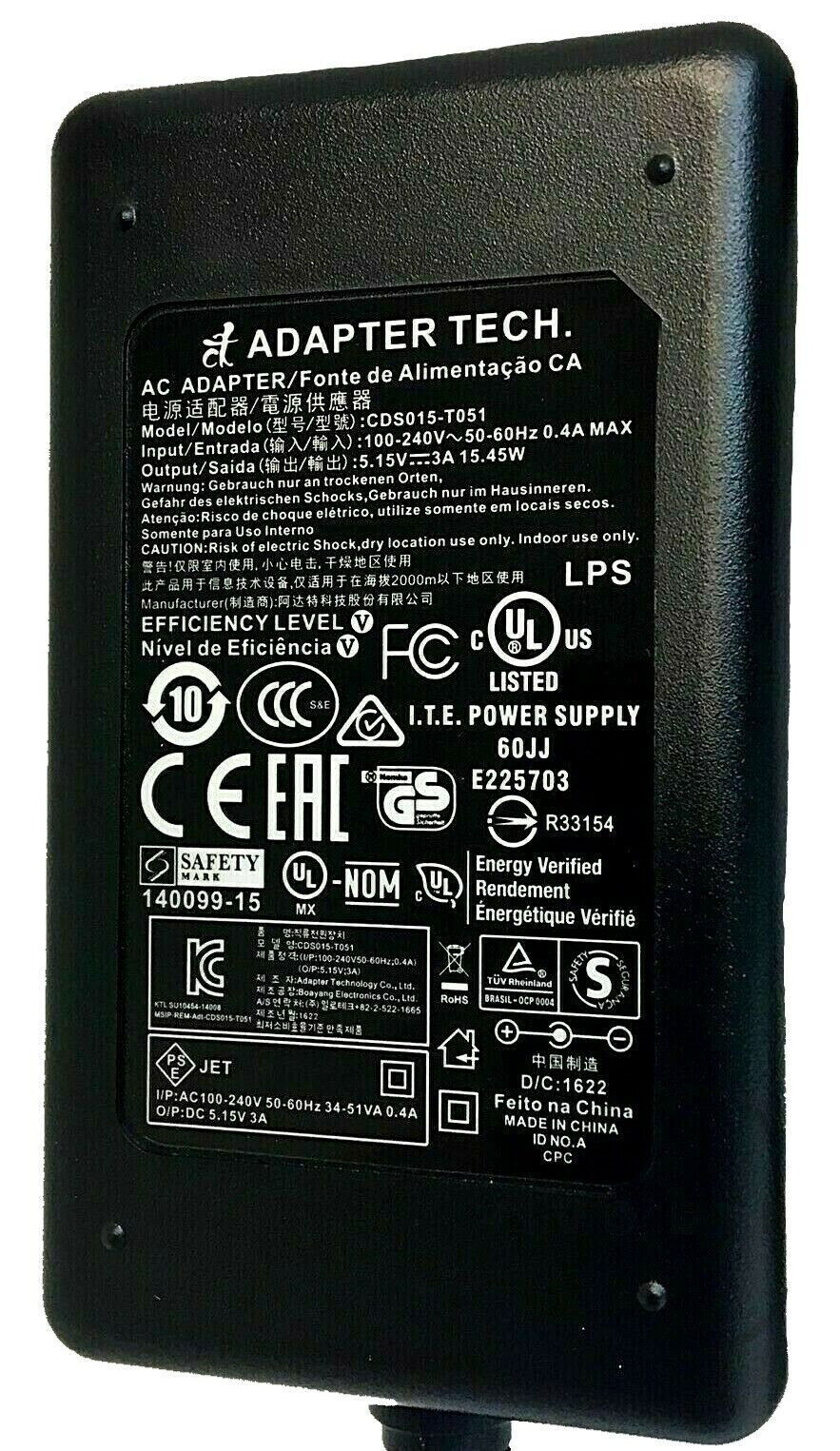 Genuine Adapter Tech CDS015-T051 AC Adapter 5.15V 3A 15.45W Power Supply w/PC
