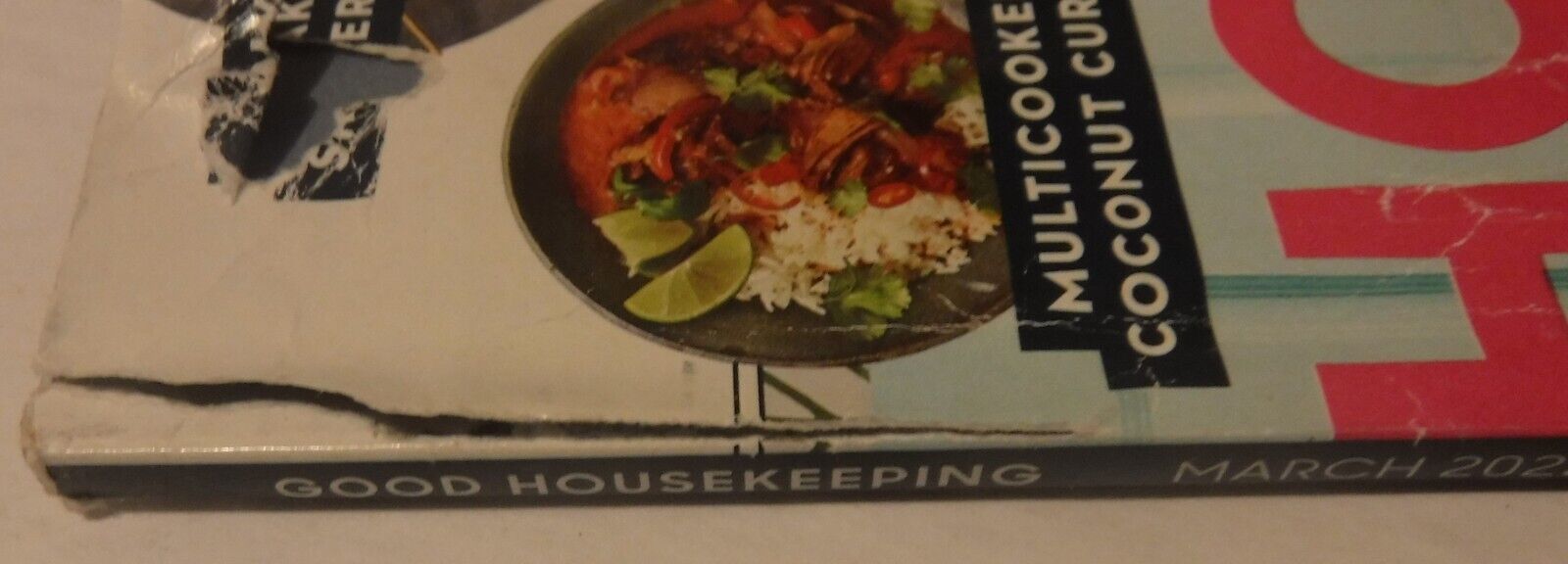 This is an original copy of Good Housekeeping Magazine. This is the March 2022 issue. The cover has minor shelf wear. The front cover has a tear in the upper left corner, the back cover has slight tearing and creasing. See photos. The pages are clean. There are no missing or torn pages.