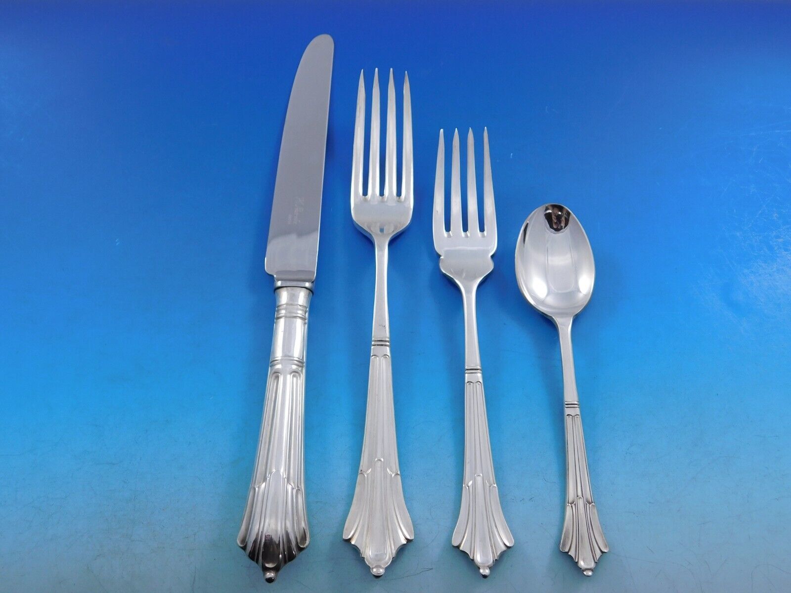 COMPLETE FLATWARE SETHOSTESS HELPERSHOLLOWWARE / TEA SETSMUSEUM QUALITY/FIGURAL SILVERFINE ESTATE VINTAGE JEWELRYMID-CENTURY MODERNSILVER FLATWARE SILVERWAREBuccellatiChristofleGeorg JensenNew Georg Jensen HollowwareNew Georg Jensen JewelryGorhamInternationalLuntMichael Aram - NewReed BartonTiffany Co.TowleWallaceWhitingPLACE SETTINGS