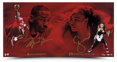 Serena Williams and Michael Jordan's signature are guaranteed authentic through the Upper Deck Authenticated hologram system.