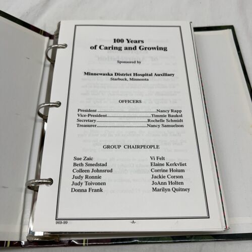 Vintage Cookbook 3 Ring Binder Minnewaska District Hospital 1999 100 Years