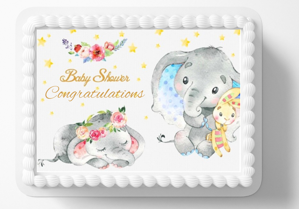 Gender Reveal Elephants Baby Shower Edible Image Personalized Edible Cake Topper