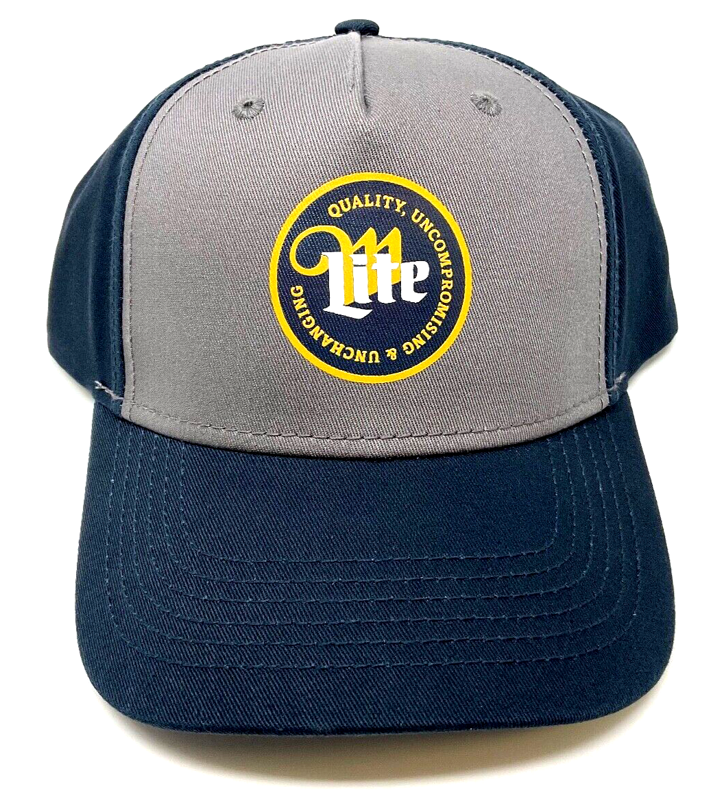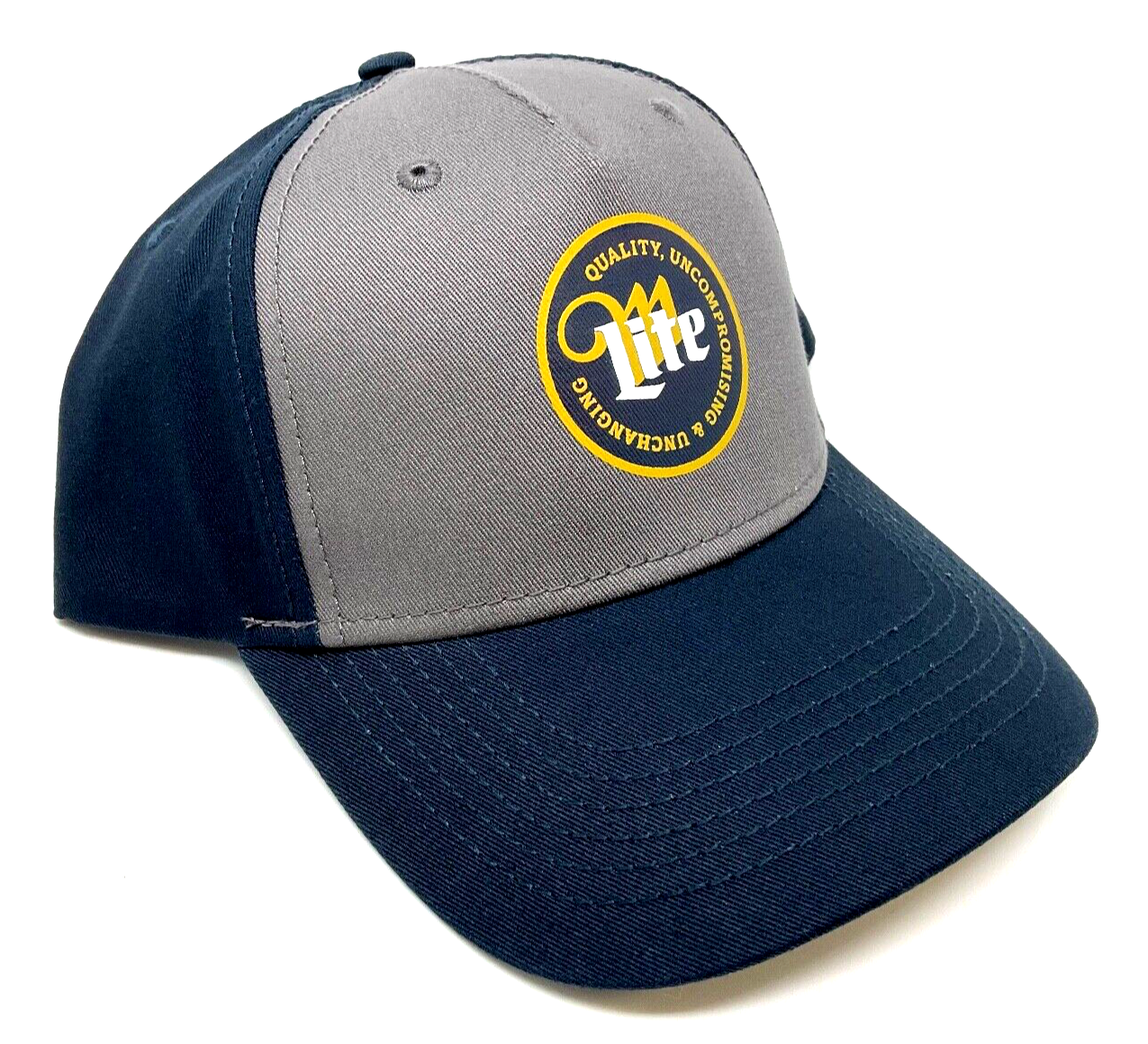MILLER LITE BEER LOGO NAVY BLUE & GREY ADJUSTABLE CURVED BILL HAT CAP RETRO MENS
