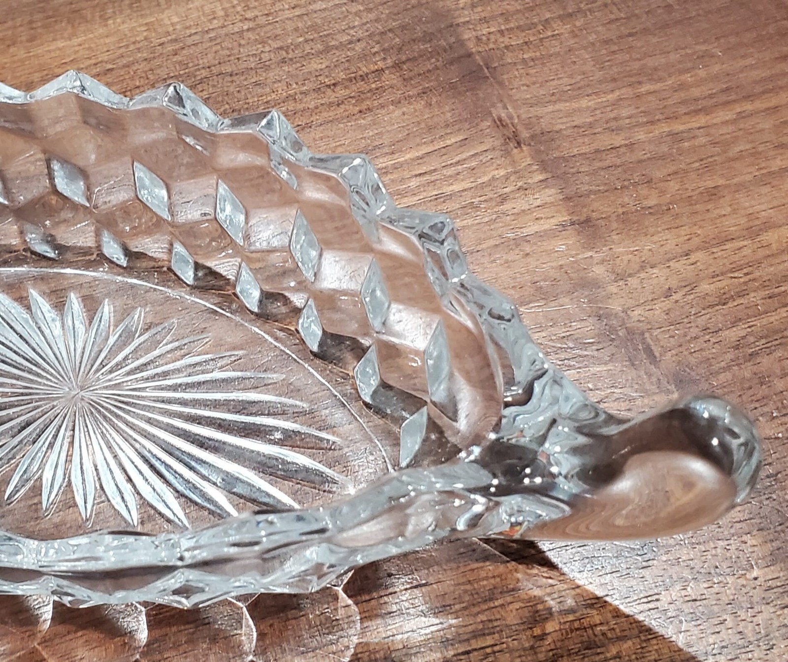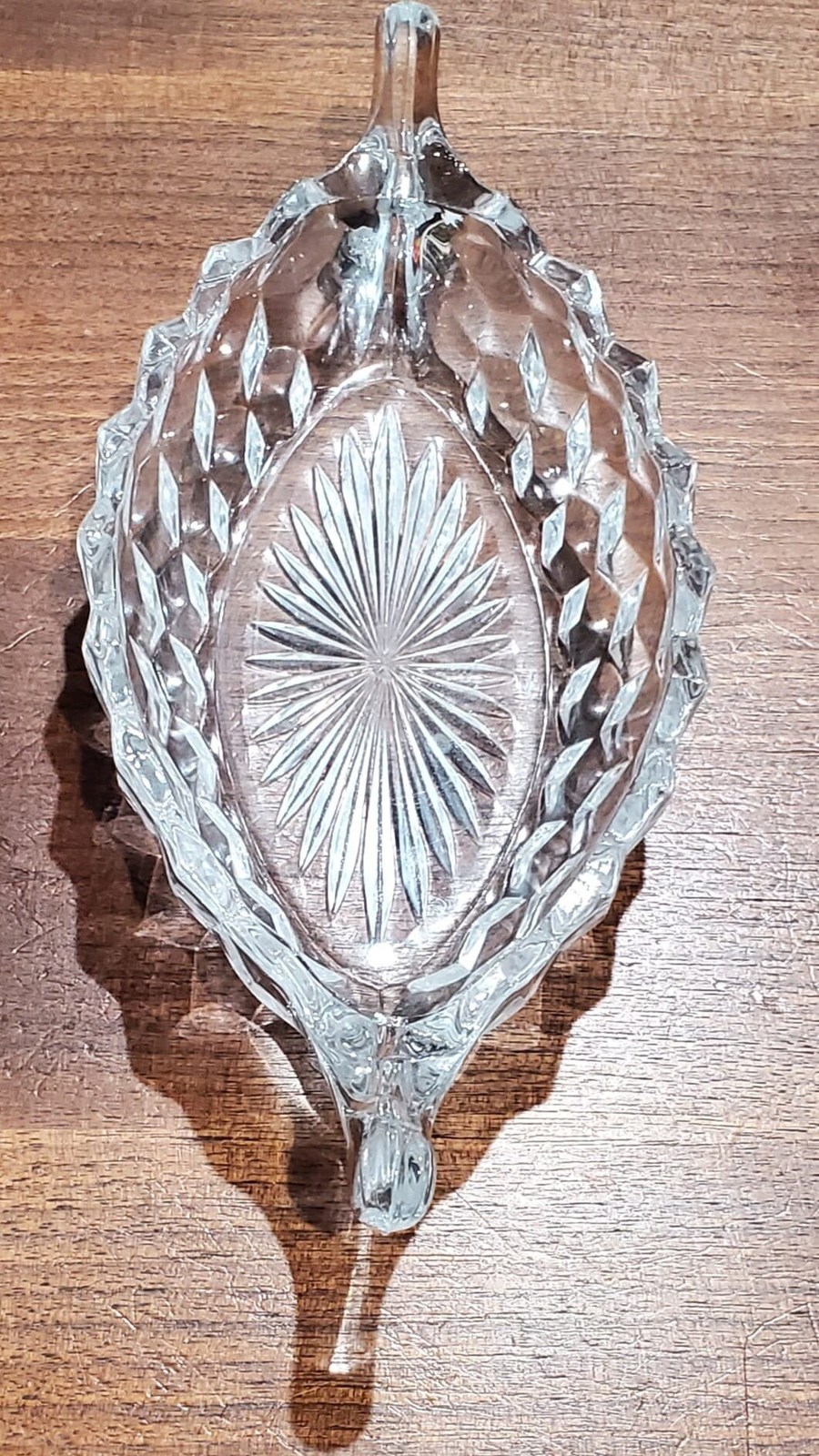 American Clear Cubist 8 1/2" Relish Boat or Candy Dish by Fostoria, Vintage, MCM