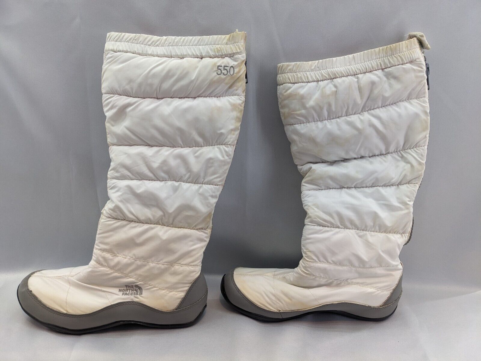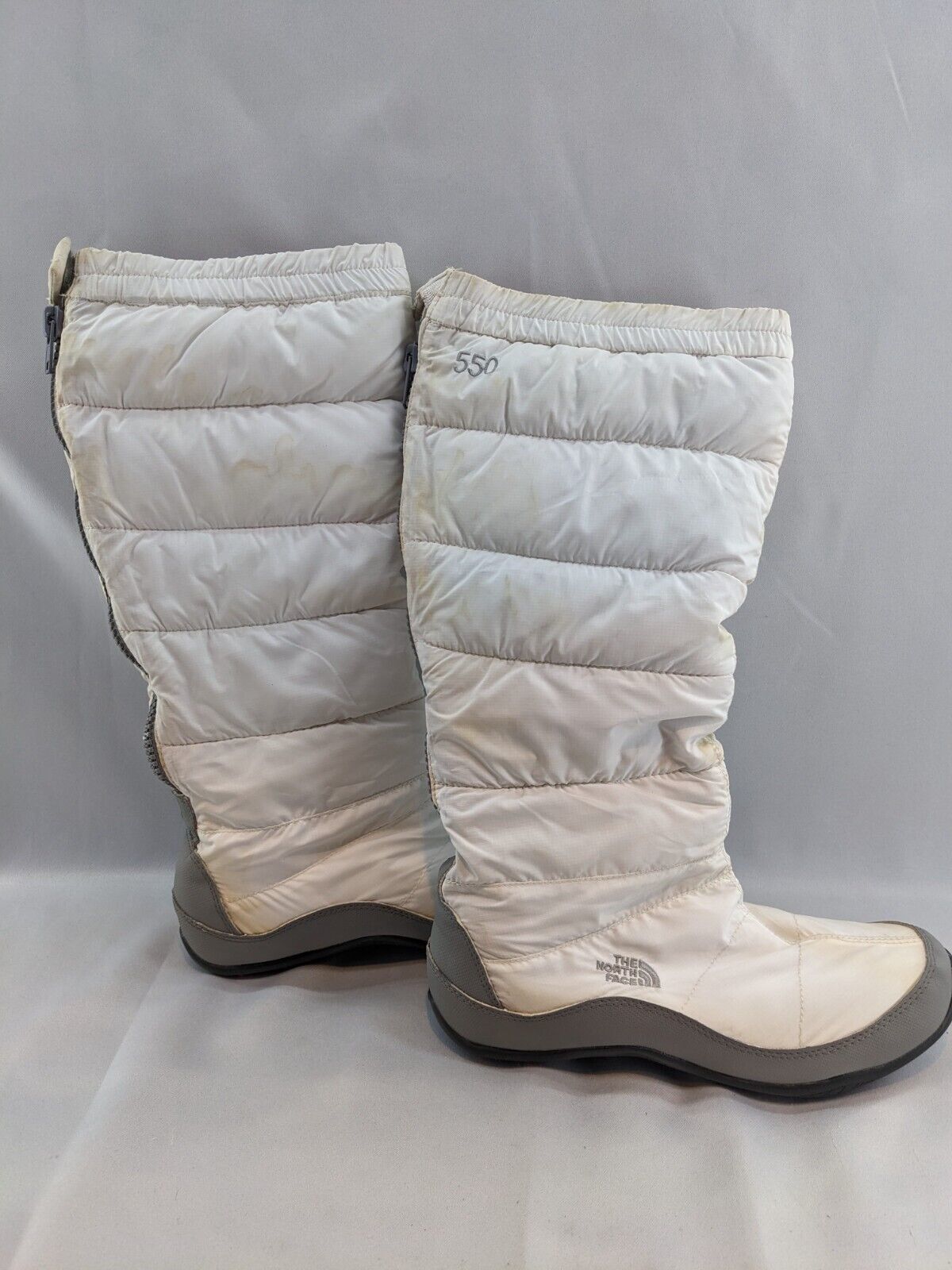 The North Face Nuptse Knee High ZipUp Goose Down Puffer Ivory 550 Boots Sz 8