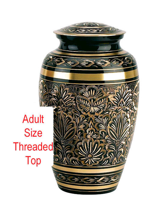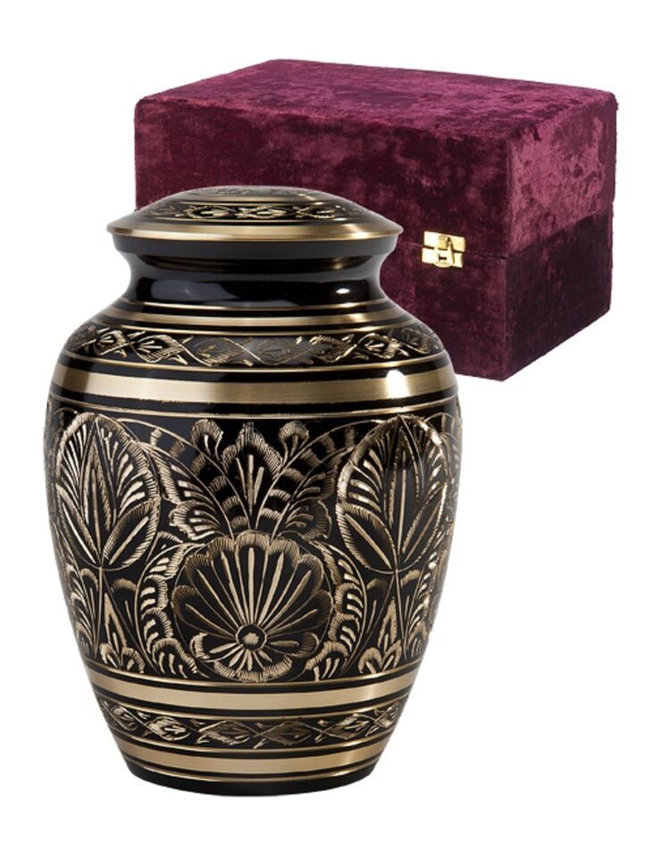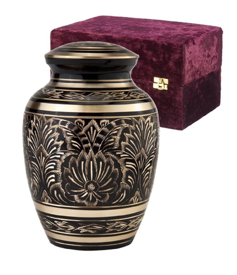 Black and Gold Color, Brass Funeral Cremation Urn Keepsake w. Velvet Heart Box
