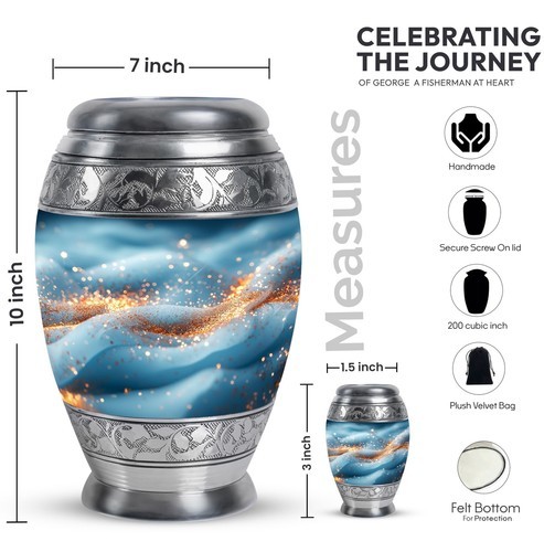 of remains. For example, a 200 pound person would need a 200 cubic inch urn or