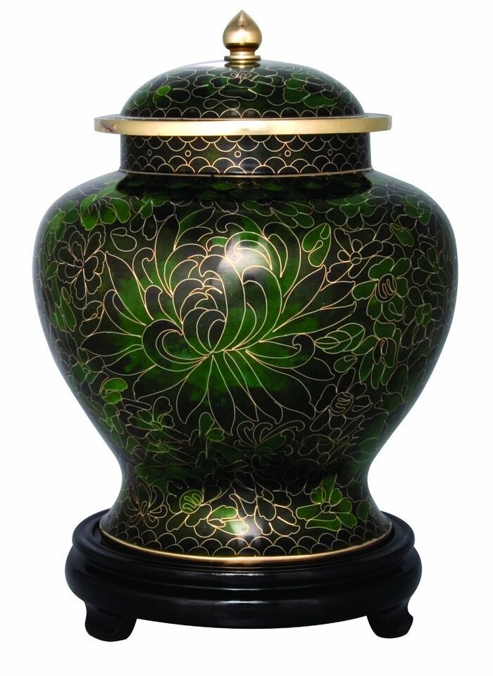 Large/Adult 220 cubic inches Forest Green Cloisonne Cremation Urn for Ashes