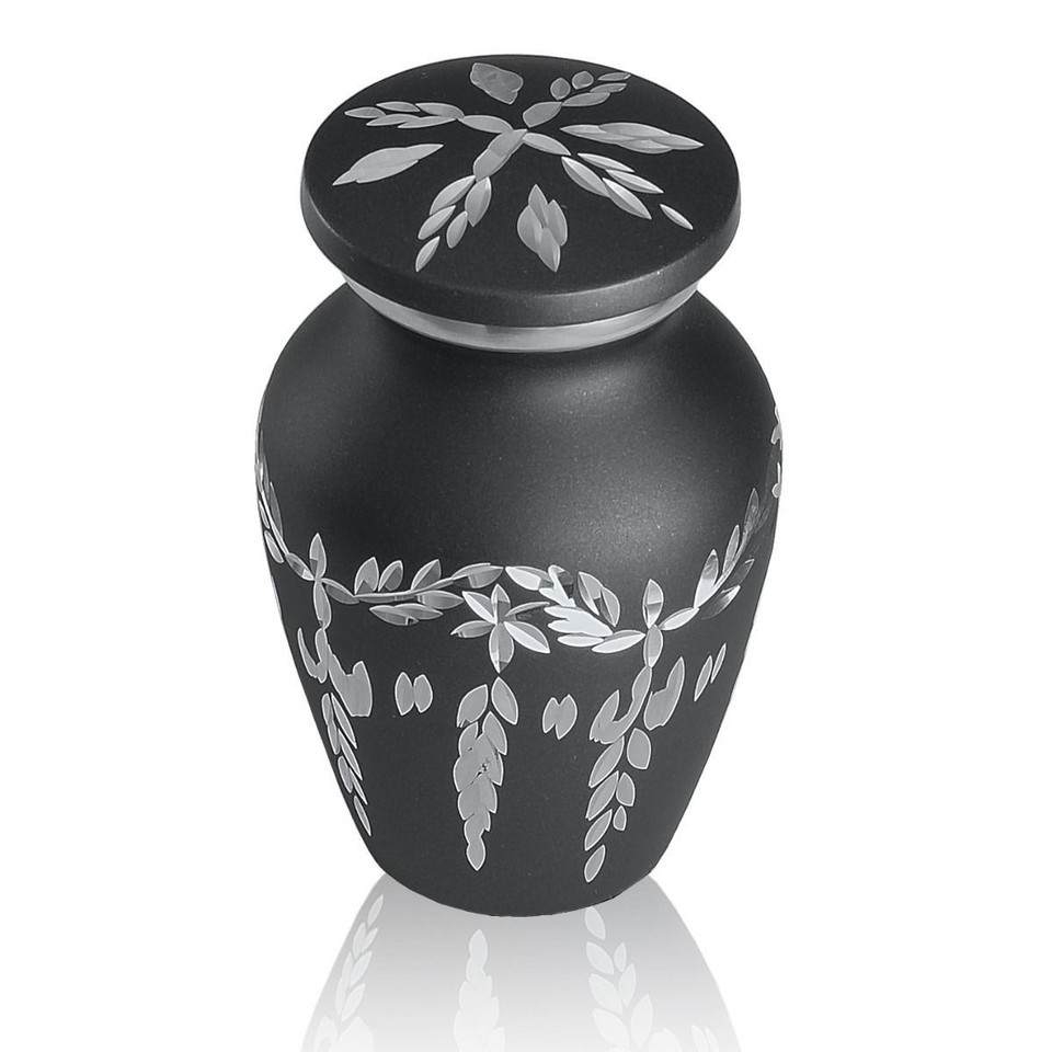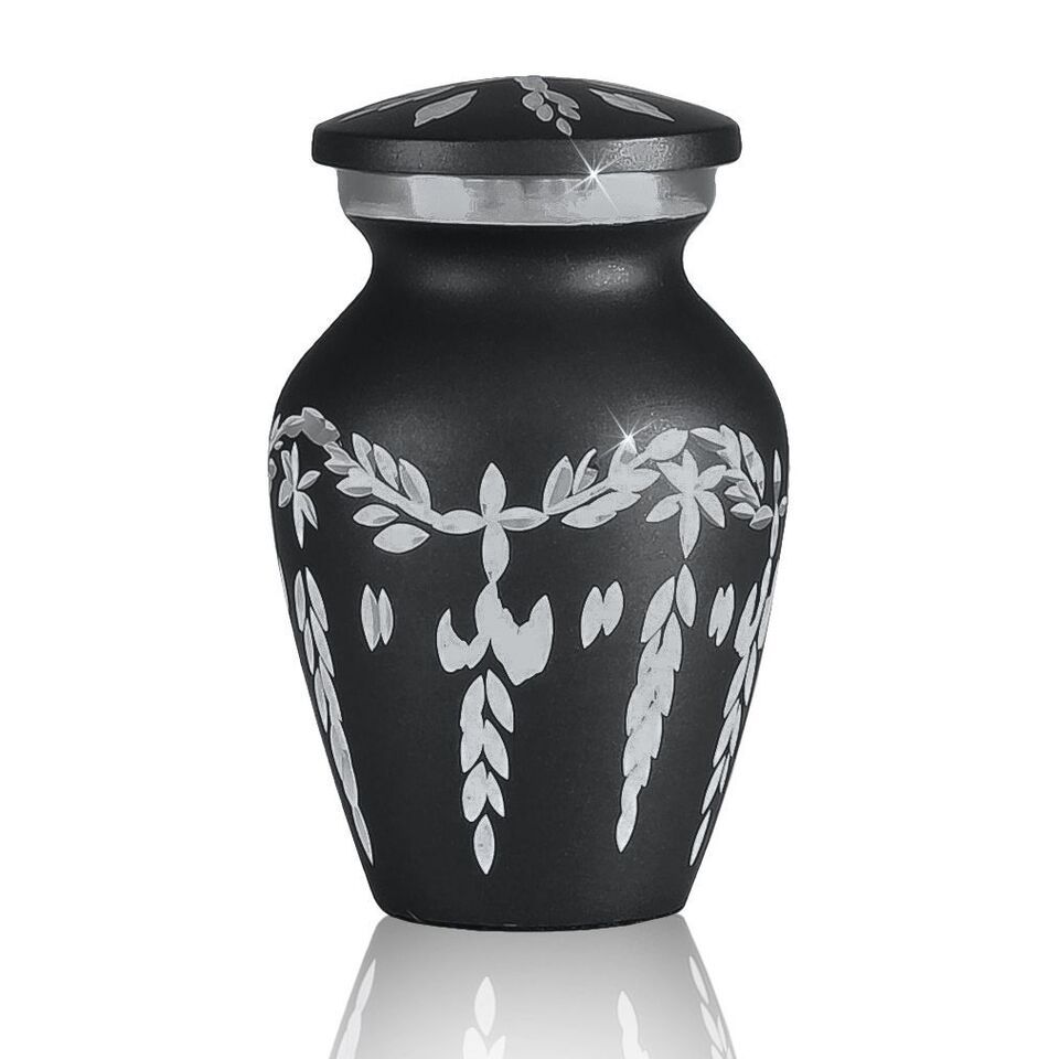 Small yet meaningful, this brass keepsake urn is finished in soft pewter and adorned with elegant hand-engraved leaf patterns. Designed to fit comfortably in the palm of your hand, it provides a secure way to hold a small portion of your loved one?s ashes. A graceful tribute to cherish for years to come.