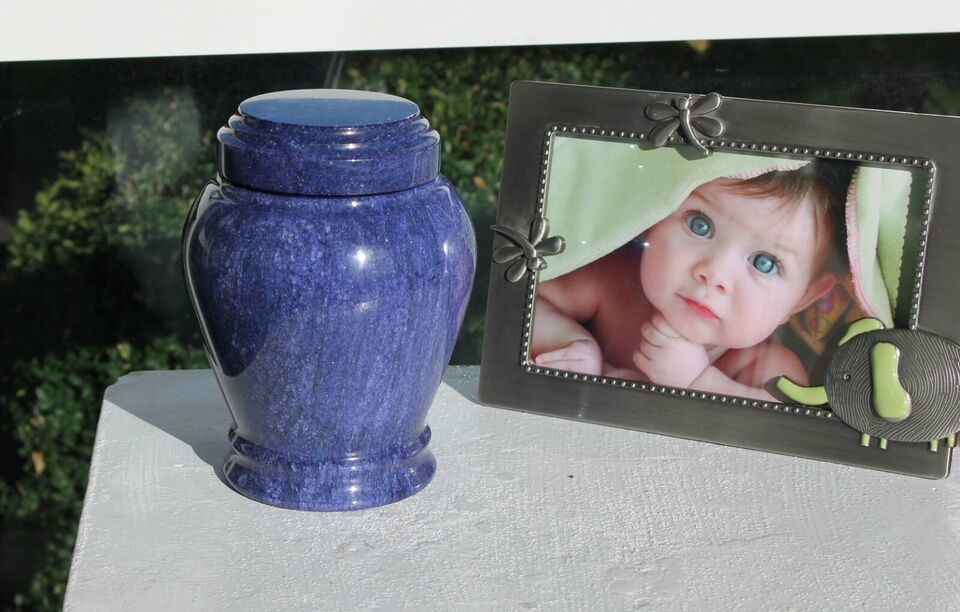 at is our Number 010-EB103, a small/keepsake sized, blue colored funeral cremation urn.