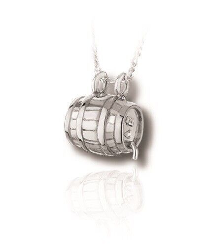 Sterling Silver Beer Barrel Funeral Cremation Urn Pendant for Ashes w/Chain