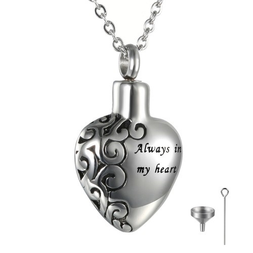 "I will Hold you in my heart" Heart Cremation Urn Pendant Necklace with Chain