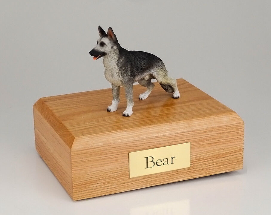German Shepherd Black/Silver Pet Funeral Cremation Urn Avail in 3 Colors 4 Sizes