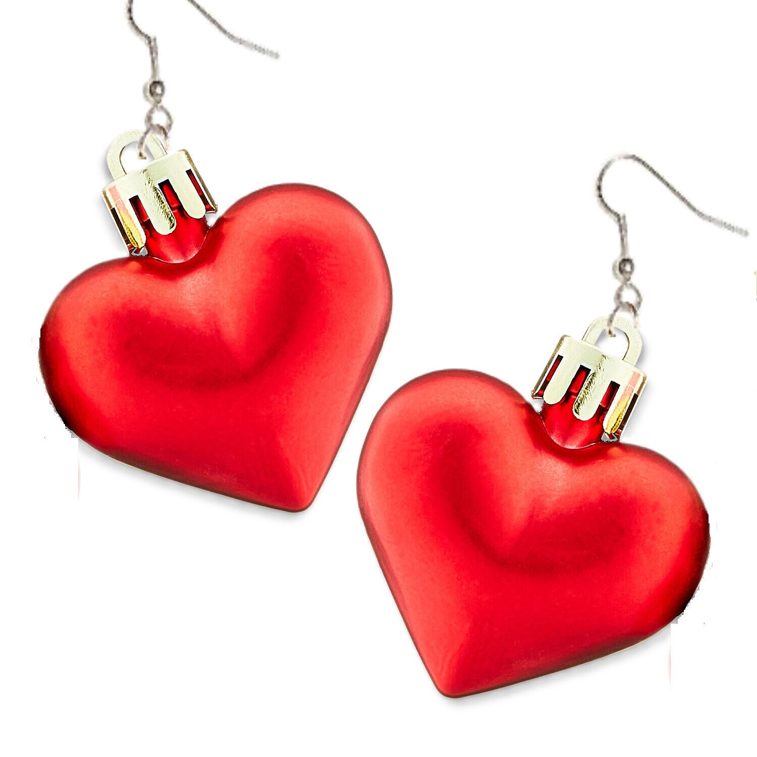 Funky Huge Oversize PUFFY HEART EARRINGS Valentine Disco Party Jewelry-FROST RED