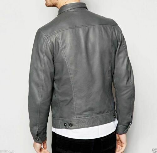 Casual Classic Men Grey Shirt Handmade Genuine Leather Lambskin Formal Stylish\AS