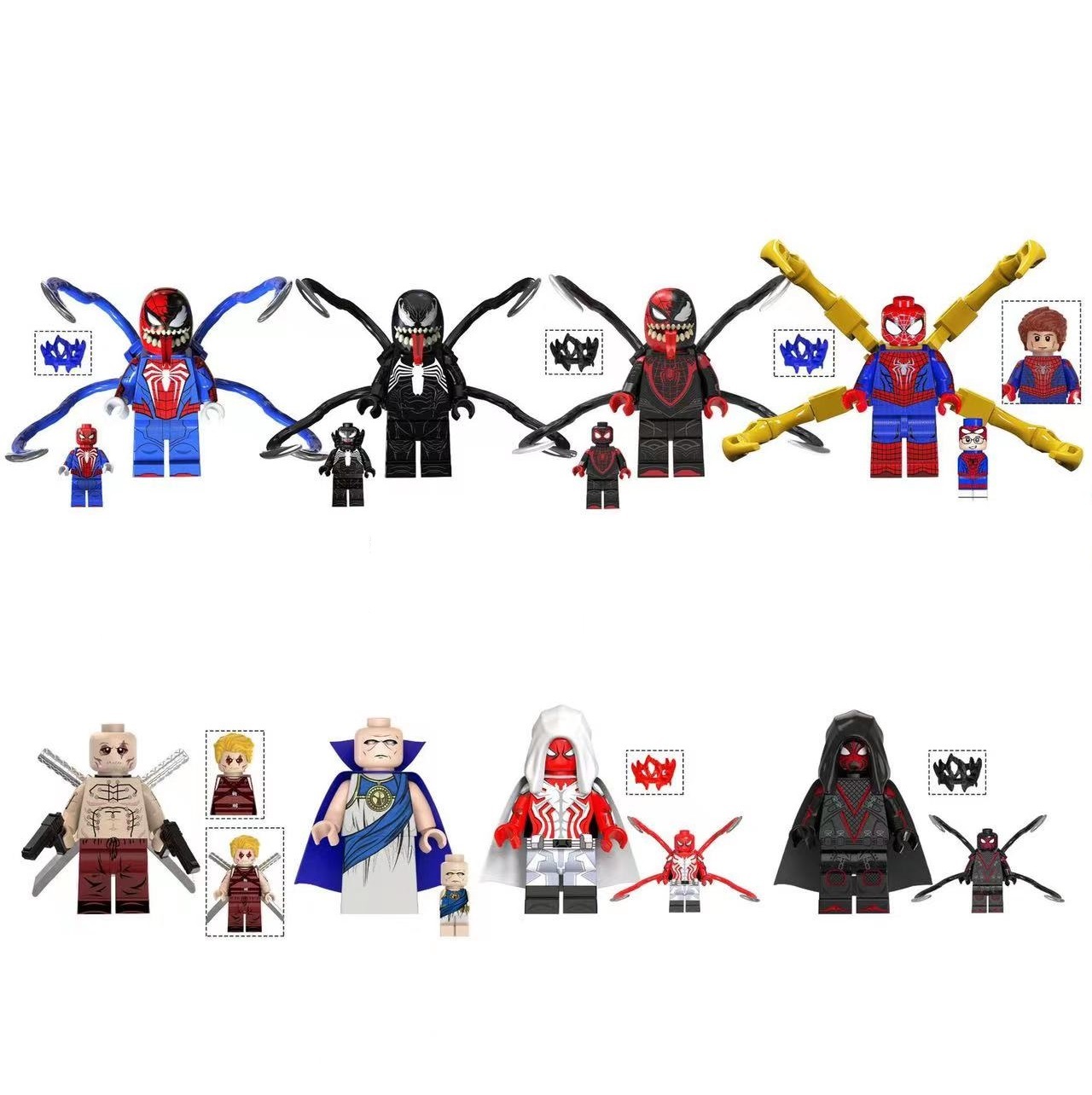 8pcs Spider-Man 2 suits Shadow-Spider Arachknight Wade Wilson Minifigures Set