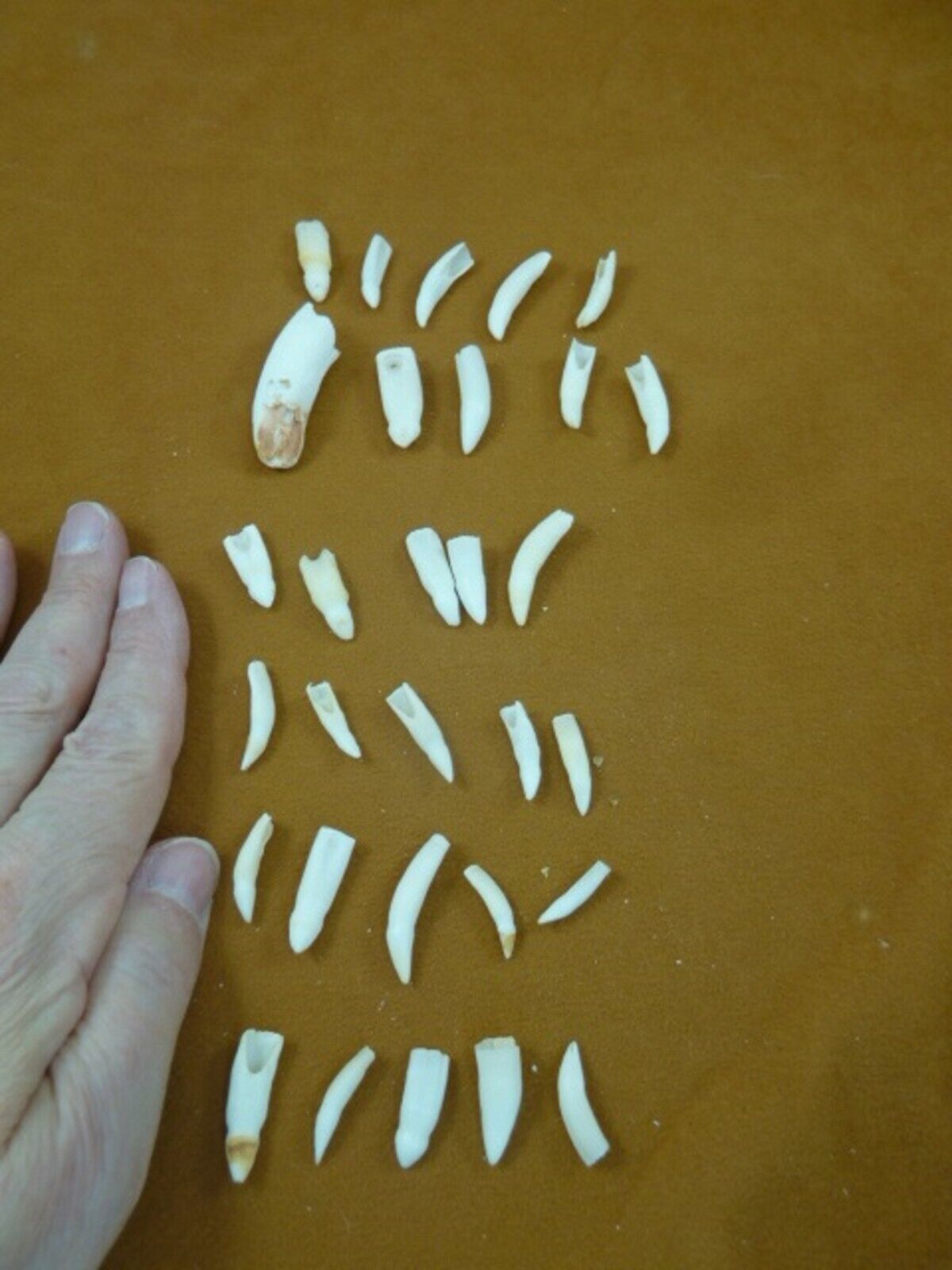 (Internal #G370-511) You are bidding on a Set of 30, sizes range from 1/2 to 1-1/4" long, genuine, natural American Alligator t**th dentition.