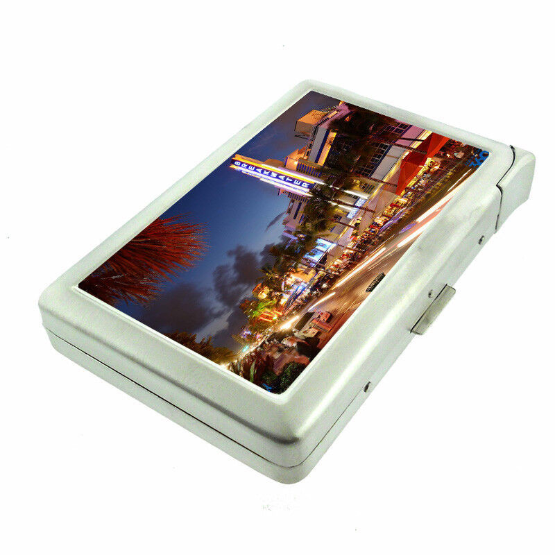Florida South Beach Miami D8 100's Size Cigarette Case with Built in Lighter
