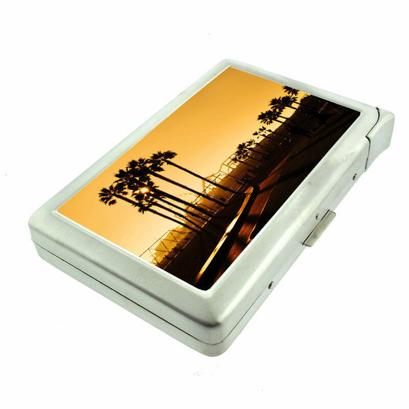 California Beach Em1 100's Size Cigarette Case with Built in Lighter Wallet