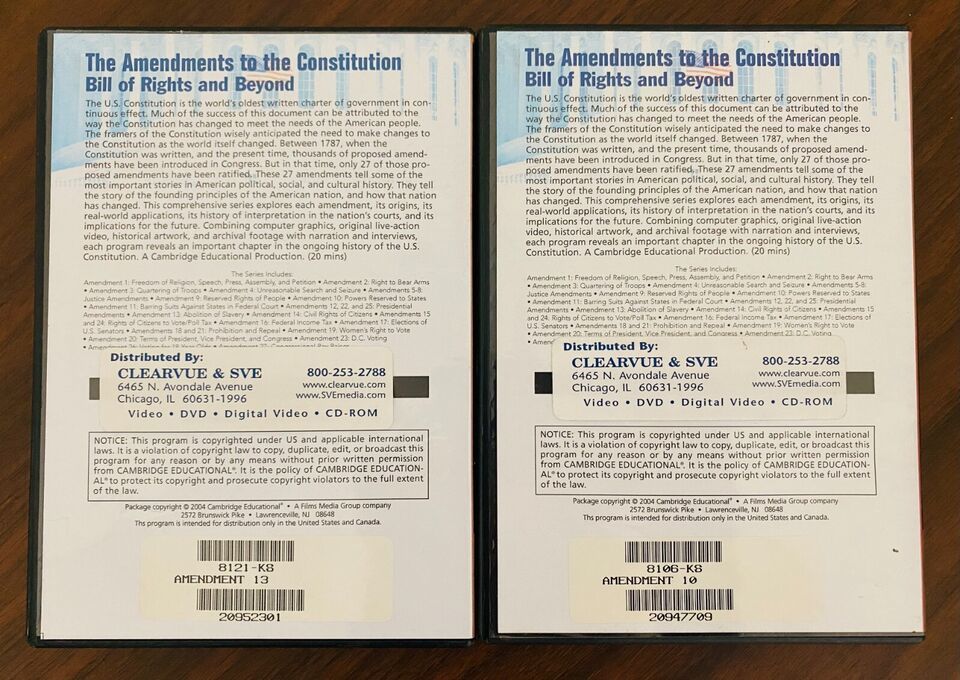 The Amendments to the Constitution (Amen. 10 & 13) DVD's Cambridge Educational