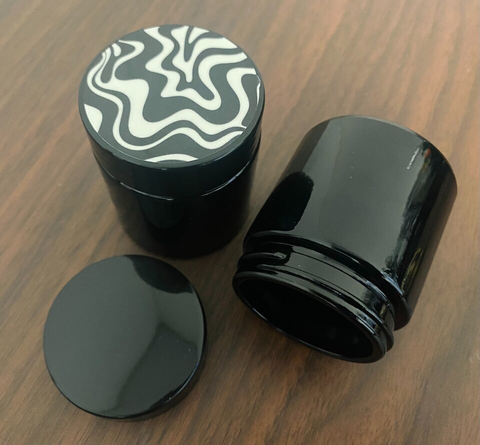 UV Blocking Black and White Abstract Swirl D1 2.5" Glass Medical Jar