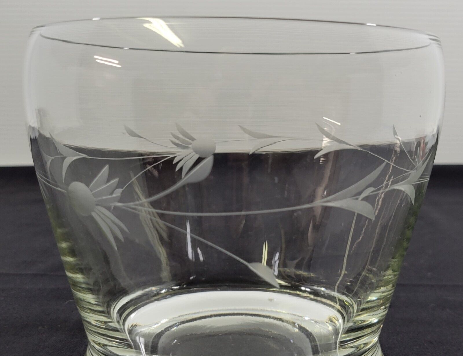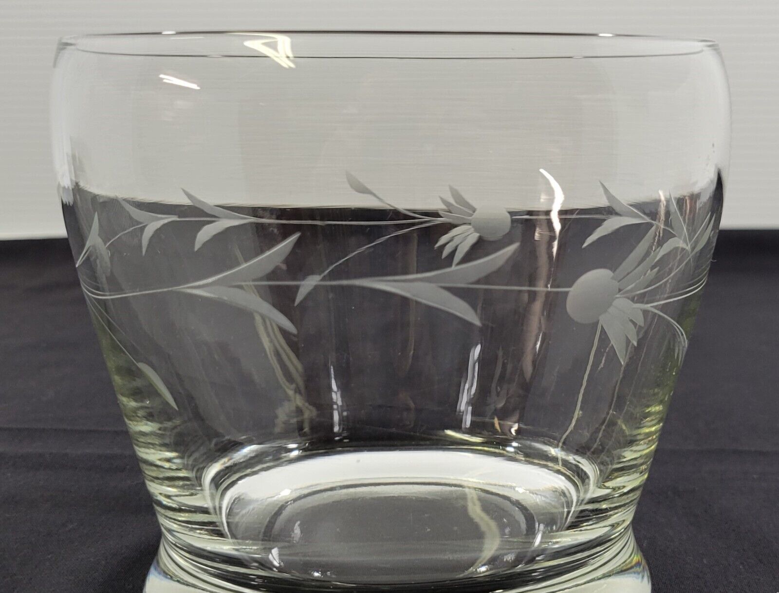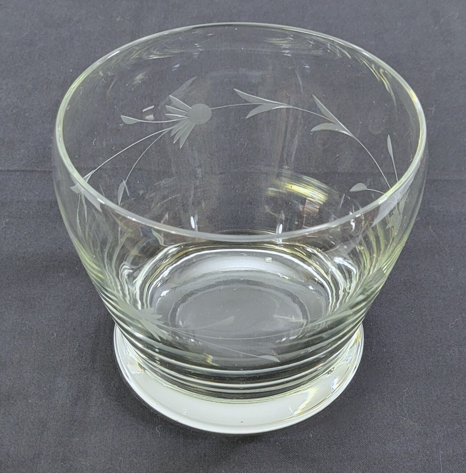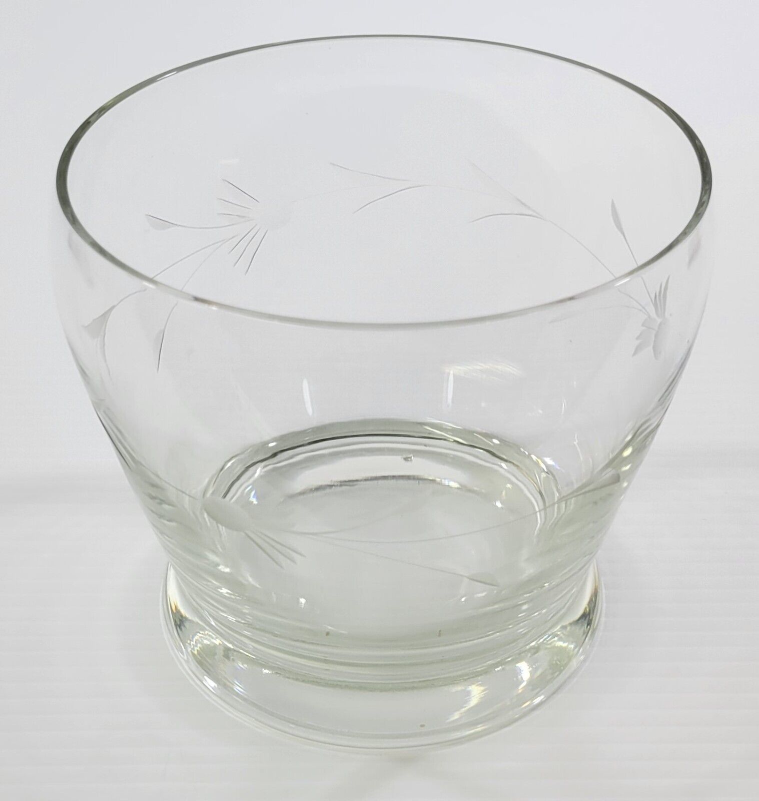Vintage Etched Flower Wheat Stem Ice Clear Glass Bowl