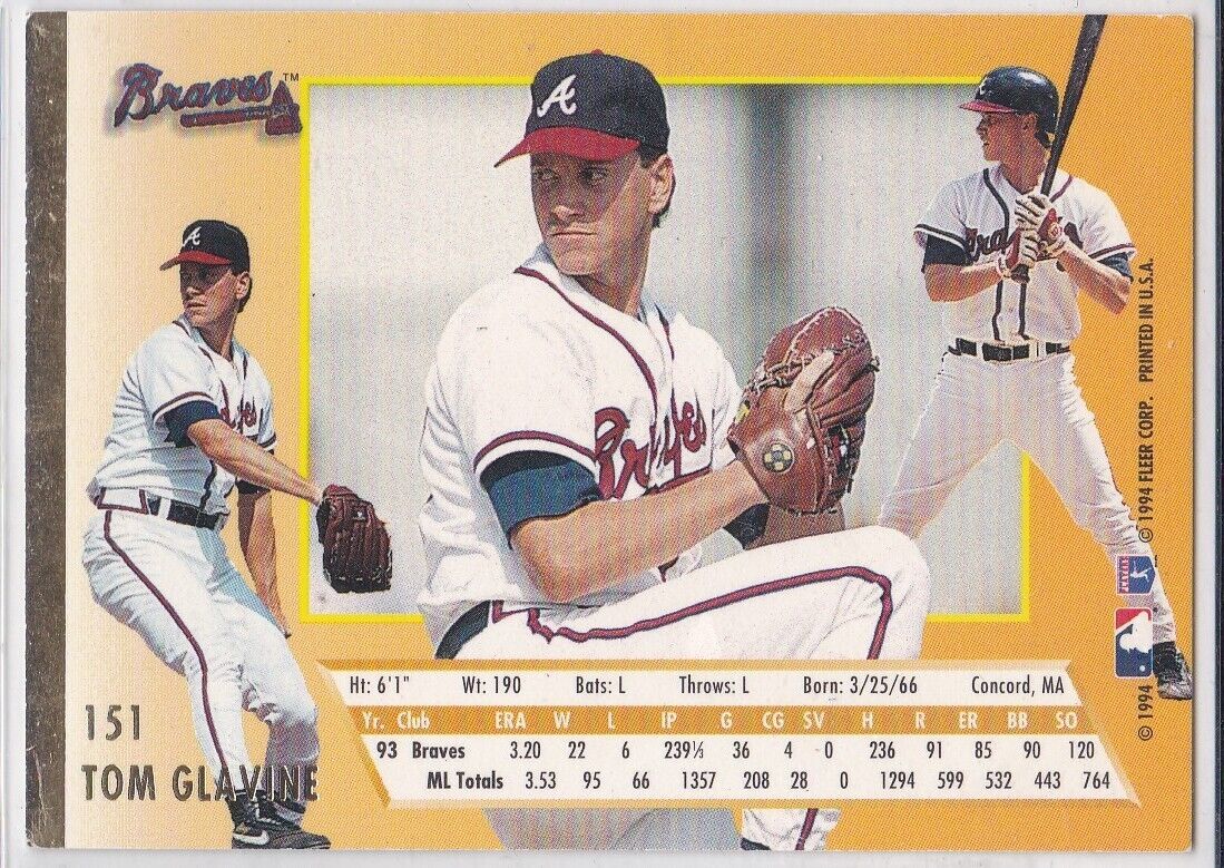 G) 1994 Fleer Ultra Baseball Trading Card - Tom Glavine #151