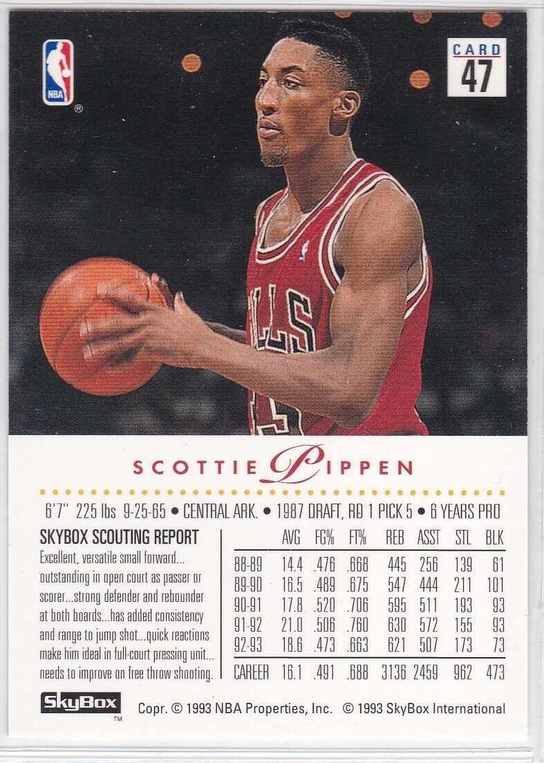 M) 1993-94 Skybox Basketball Trading Card - Scottie Pippen #47
