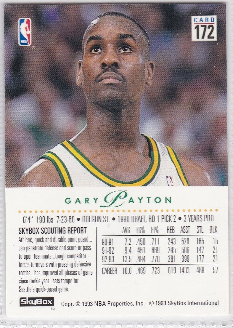M) 1993-94 Skybox Basketball Trading Card - Gary Payton #172