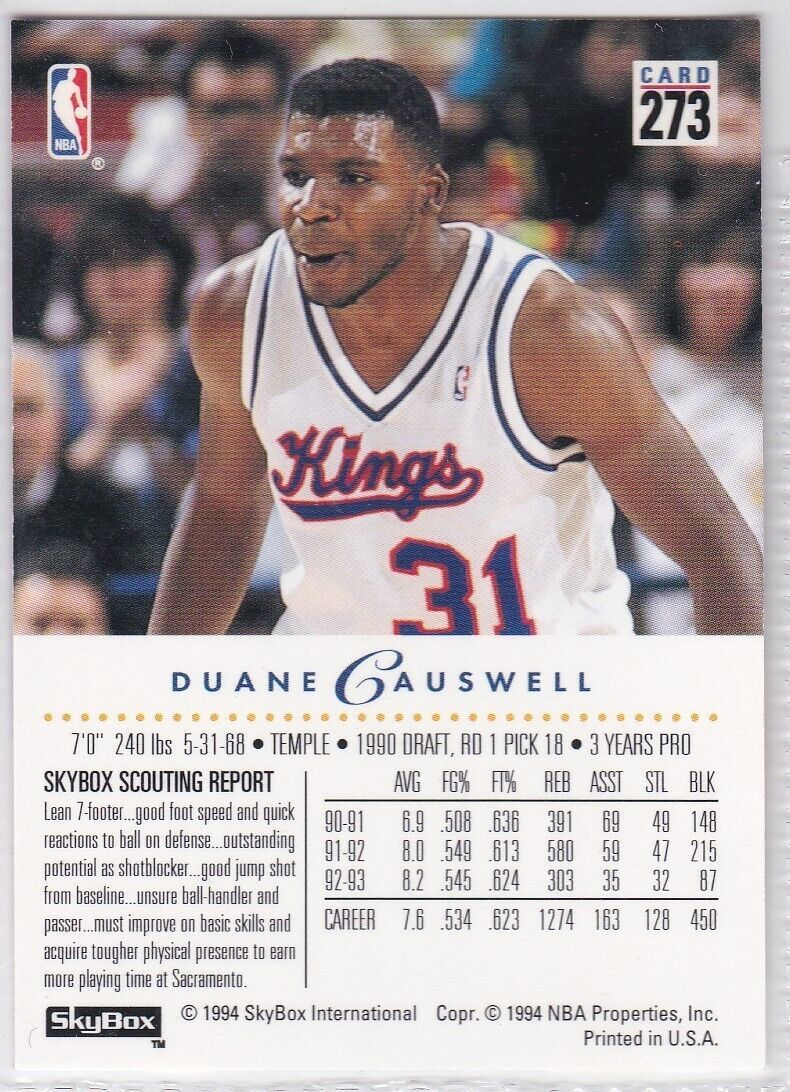 M) 1993-94 Skybox Basketball Trading Card - Duane Causwell #273