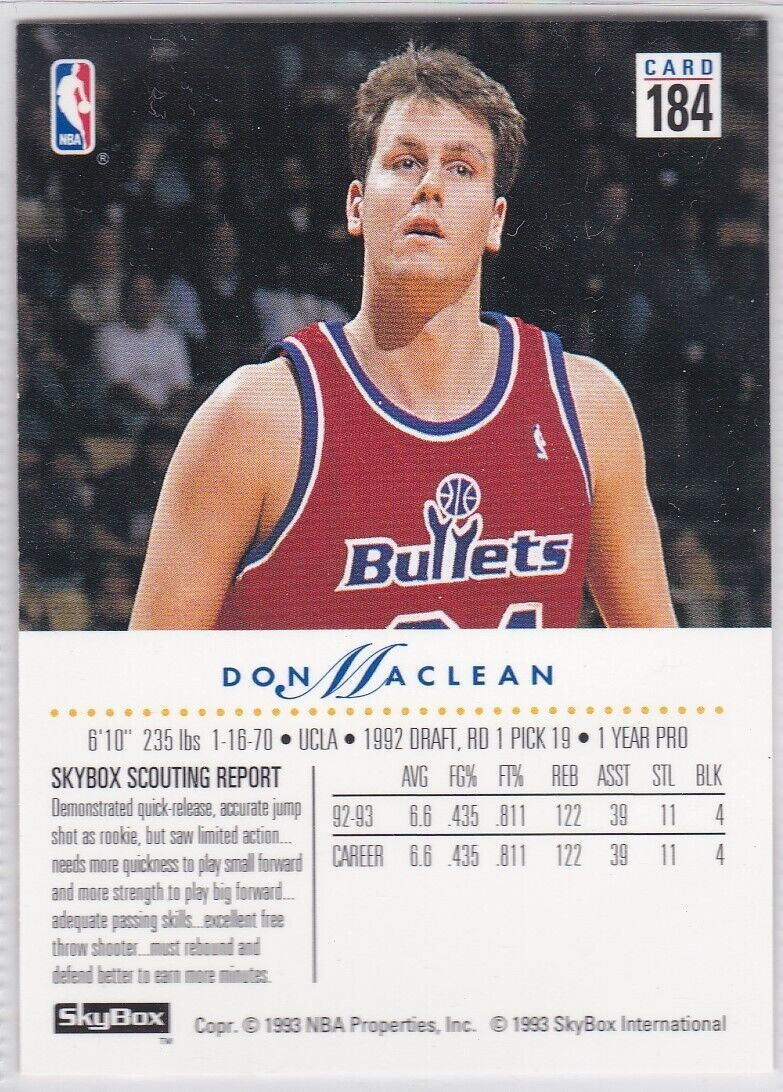 M) 1993-94 Skybox Basketball Trading Card - Don Maclean #184