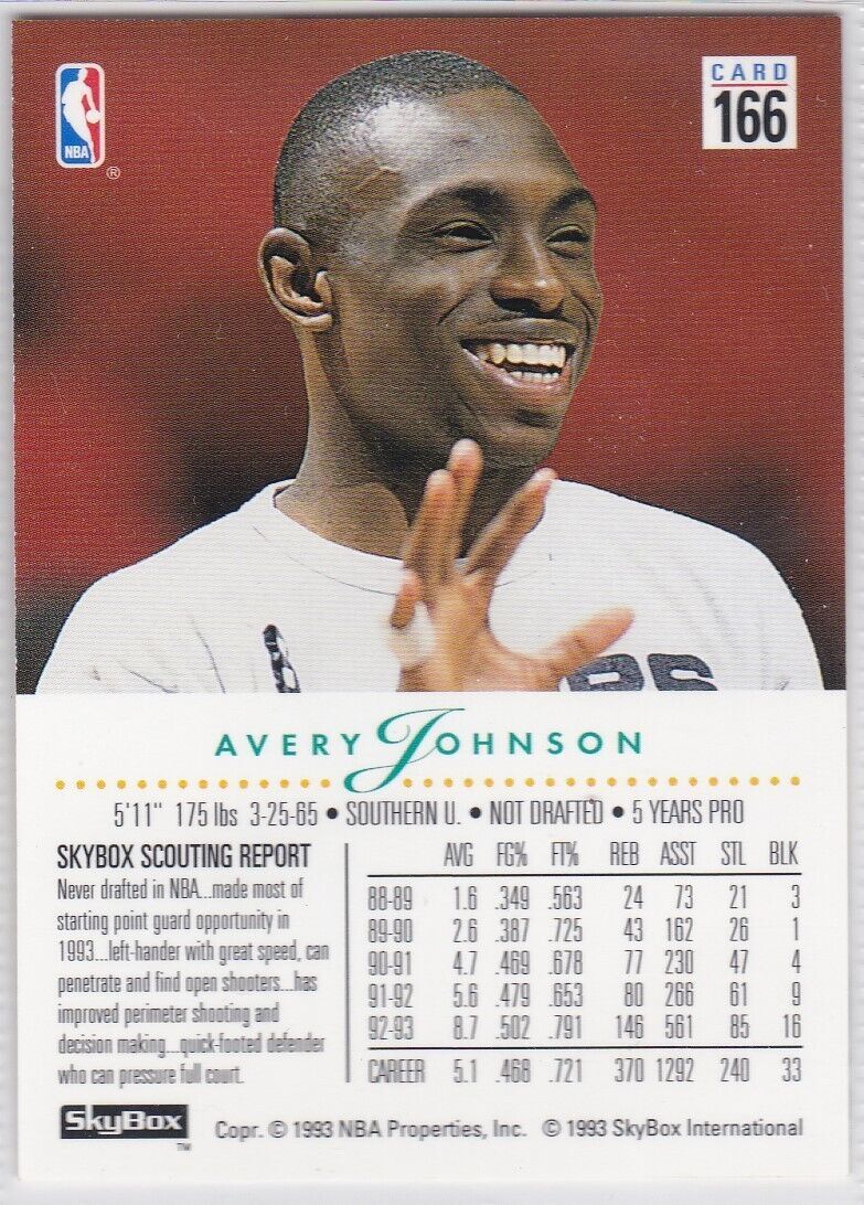 M) 1993-94 Skybox Basketball Trading Card - Avery Johnson #166