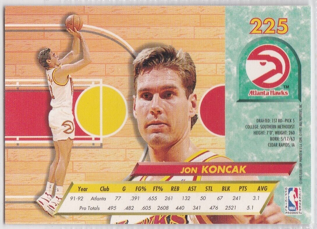 M) 1992-93 Fleer Ultra NBA Basketball Trading Card Jon Koncak #225