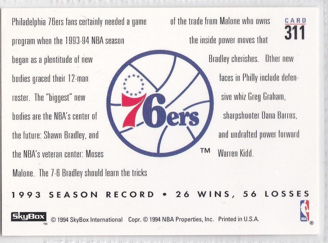 M) 1993-94 Skybox Basketball Trading Card - Changing Faces - Malone Bradley #311