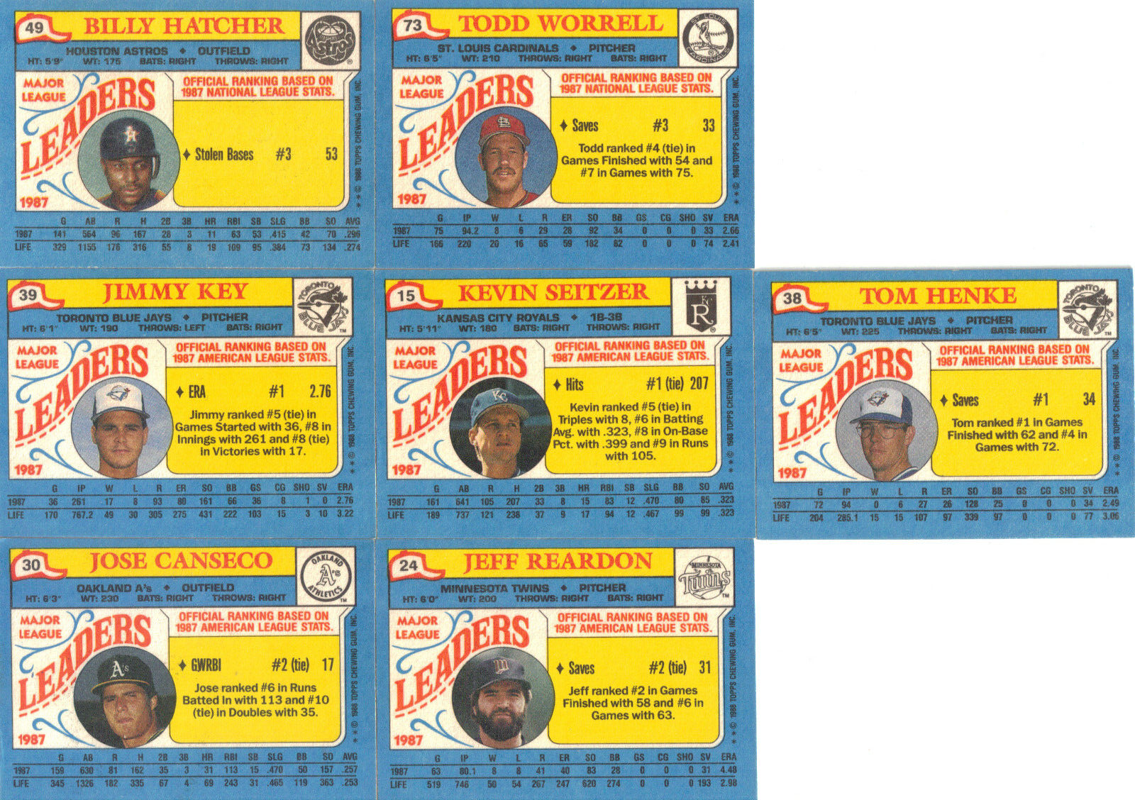 1988 Topps Mini League Leaders Baseball Trading Cards Lot of 7 Jose Canseco Key