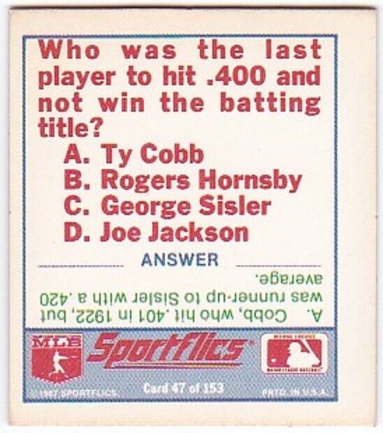 1987 Sportflics #47 Mini Baseball Trivia and similar items