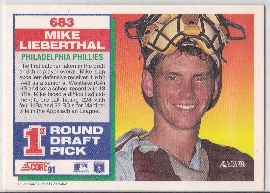 M) 1991 Score Baseball Trading Card - 1st Round Draft Pick Mike Lieberthal #683