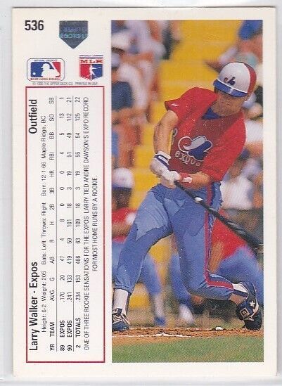 G) 1991 Upper Deck Baseball Trading Card - Larry Walker #536