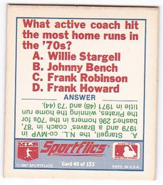 1987 Sportflics #40 Mini Baseball Trivia and 50 similar items